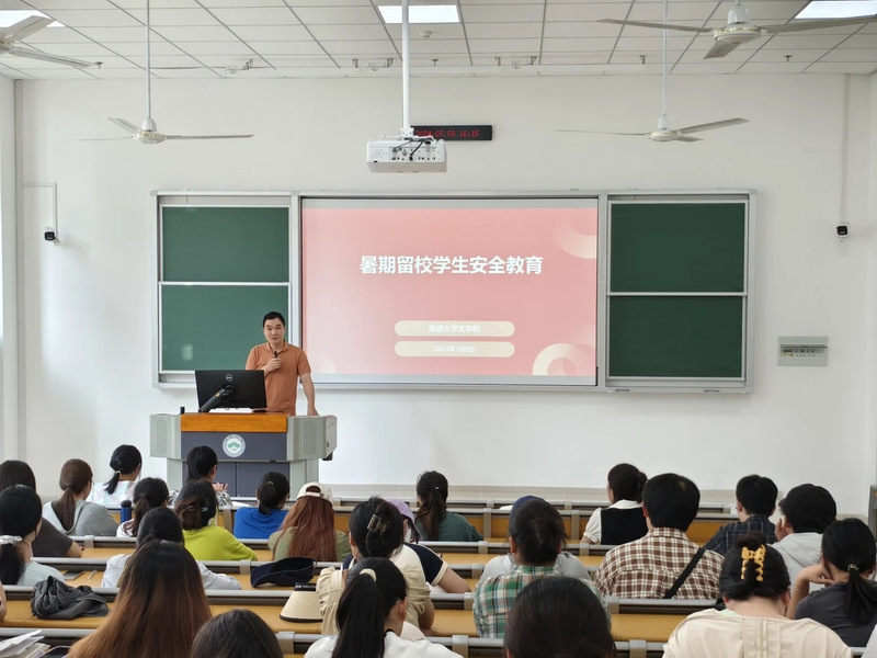 学院党委副书记、副院长阚兴辉向留校的35名研究生和171名本科生发出最亲切的慰问,对同学们在高温下仍旧坚持学习、参与社会实践活动的精神给予了高度评价和赞许。他提出四点要求:一是坚守初心使命,实干笃定前行。他提醒学生们要始终不忘留校的目的,保持勤奋学习,成为新时代有理想、有抱负的大学生;二是精确管理时间,提高学习效率。他鼓励同学们合理安排时间,充分利用暑期这段时间,为自己的学习和生活设定明确目标和计划;三是树立安全意识,谨守规章制度。他特别强调安全的重要性,提醒同学们遵守校规校纪,展现文明大学生的形象,尤其是在防中暑、防溺水、防电诈、交通安全和食品安全等方面,要加强自我保护;四是强化身份意识,明确使命担当。他号召学生党员和学生干部发挥先锋模范作用,密切关注安全隐患,积极参与校园安全管理,确保暑期留校期间的安全稳定。